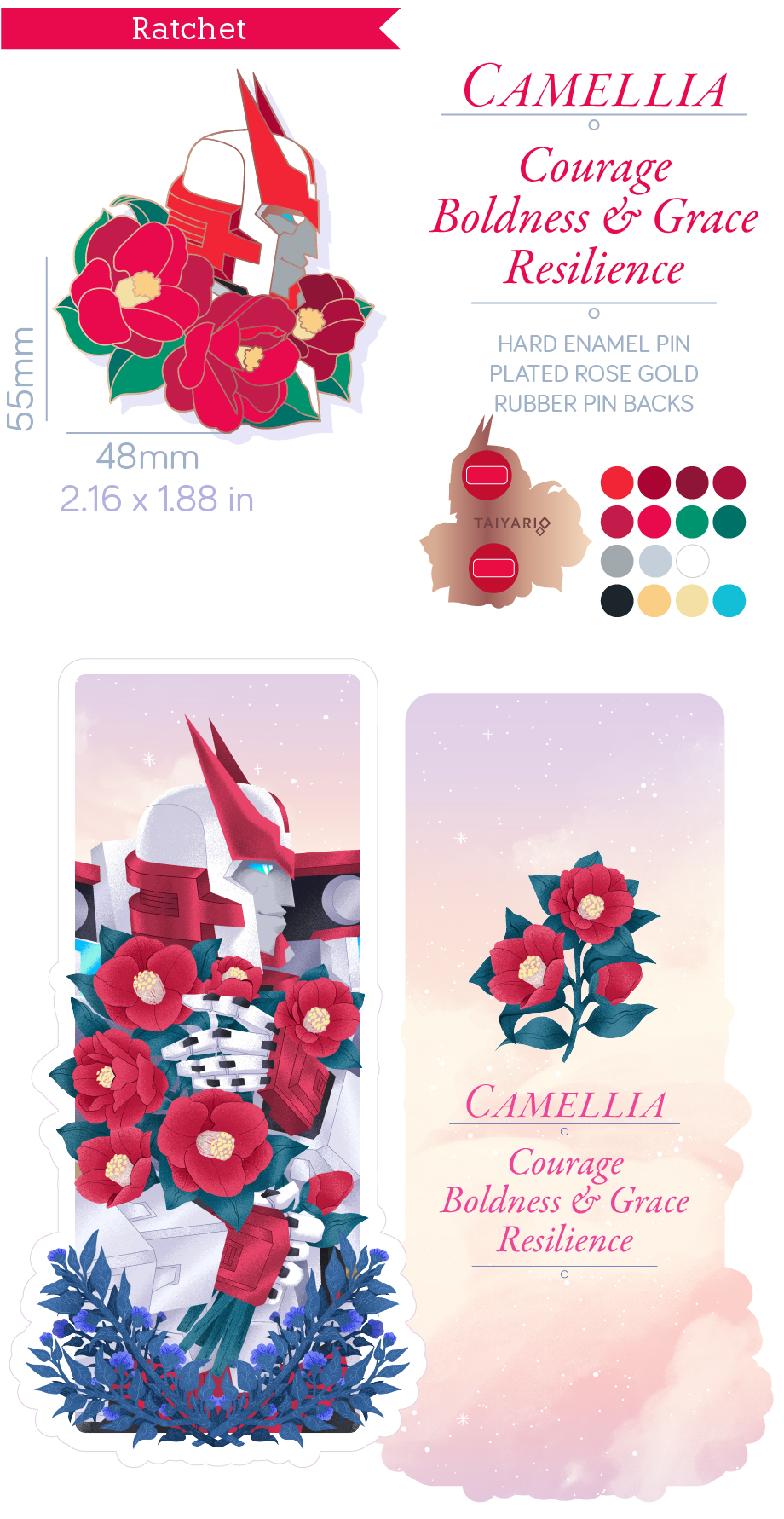 See the Kickstarter here: https://www.kickstarter.com/projects/taiyari/florescere-a-tf-enamel-pin-set